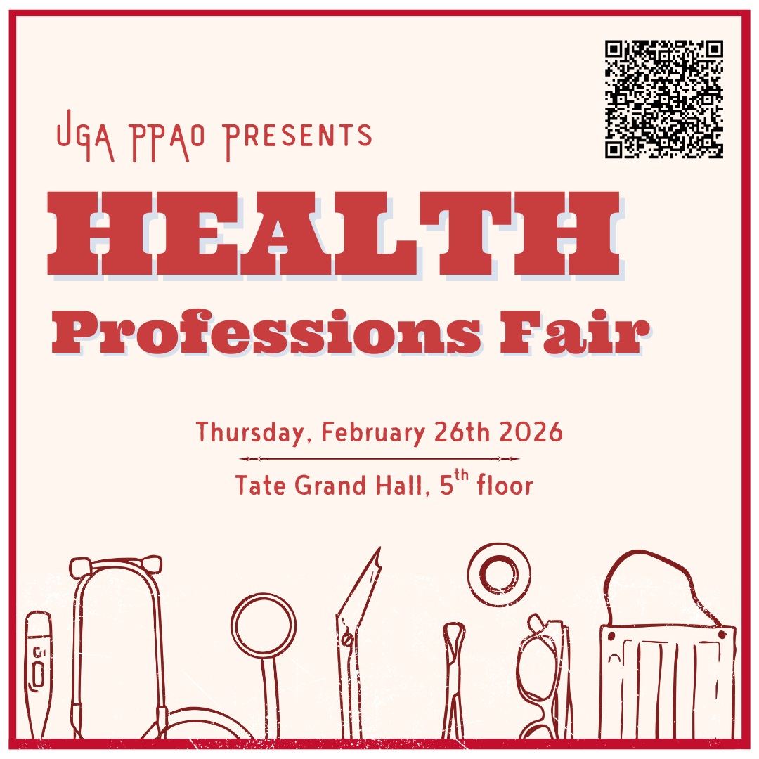 The Pre-Professional Advising Office will be holding a Health Professions Fair on Thursday, February 26th from 11:30am-3:30pm in Tate Grand Hall. The goal of the Health Professions Fair is to provide UGA Pre-Health students the opportunity to connect directly with admissions representatives from health professional schools across the country. Students are highly encouraged to stop by and chat with representatives from a variety of health care programs. This is your opportunity to ask questions, show your interest and to learn more about all the different programs available. This Fair will include representatives from medical, dental, veterinary, optometry, allied health, physician associate, nursing, pharmacy programs, and more!