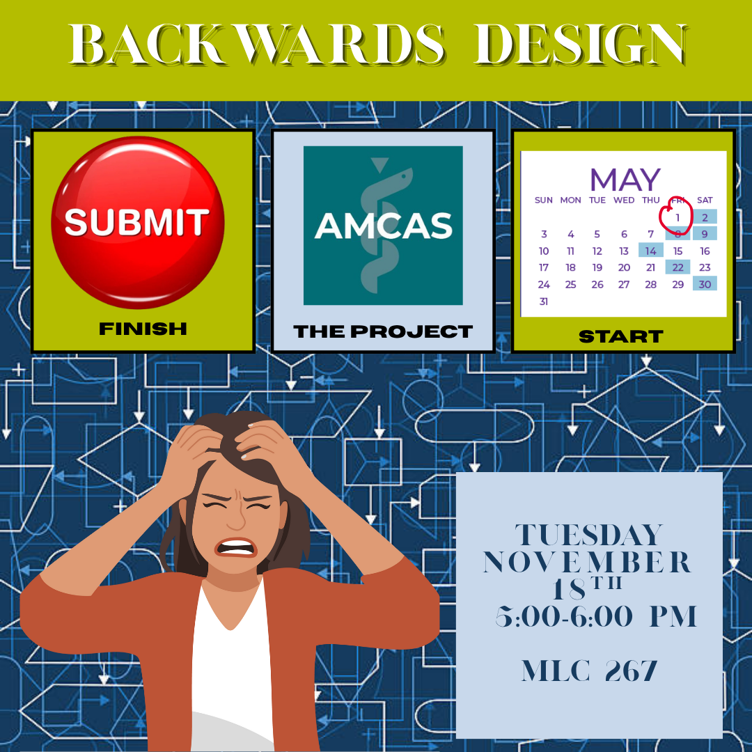 Are you applying to medical, dental, or other health professional schools in 2026? Don’t wait for deadlines to sneak up on you—plan backwards from your target application submission date to stay on track. We will hold a workshop on this tool on Tuesday, November 18th, from 5:00 PM to 6:00 PM, in MLC 267. This session will help you map out key milestones like entrance exams, letters of recommendation, personal statements, and school selection. Learn how to build a timeline that keeps you organized, reduces stress, and maximizes your chances of success!