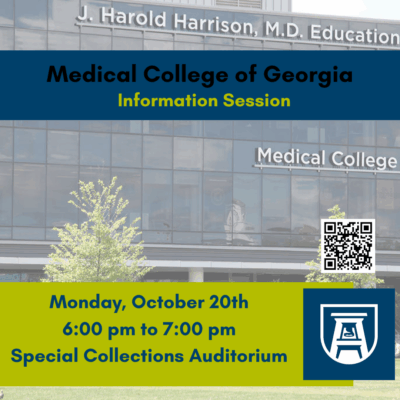 The Medical College of Georgia will be visiting on Monday, October 20th at 6:00 PM in the Special Collections Library Auditorium. Current applicants and students applying in the upcoming cycle are highly encouraged to attend. The presentation is open to all students. Professional dress is not required, but it is encouraged, especially for students applying […]